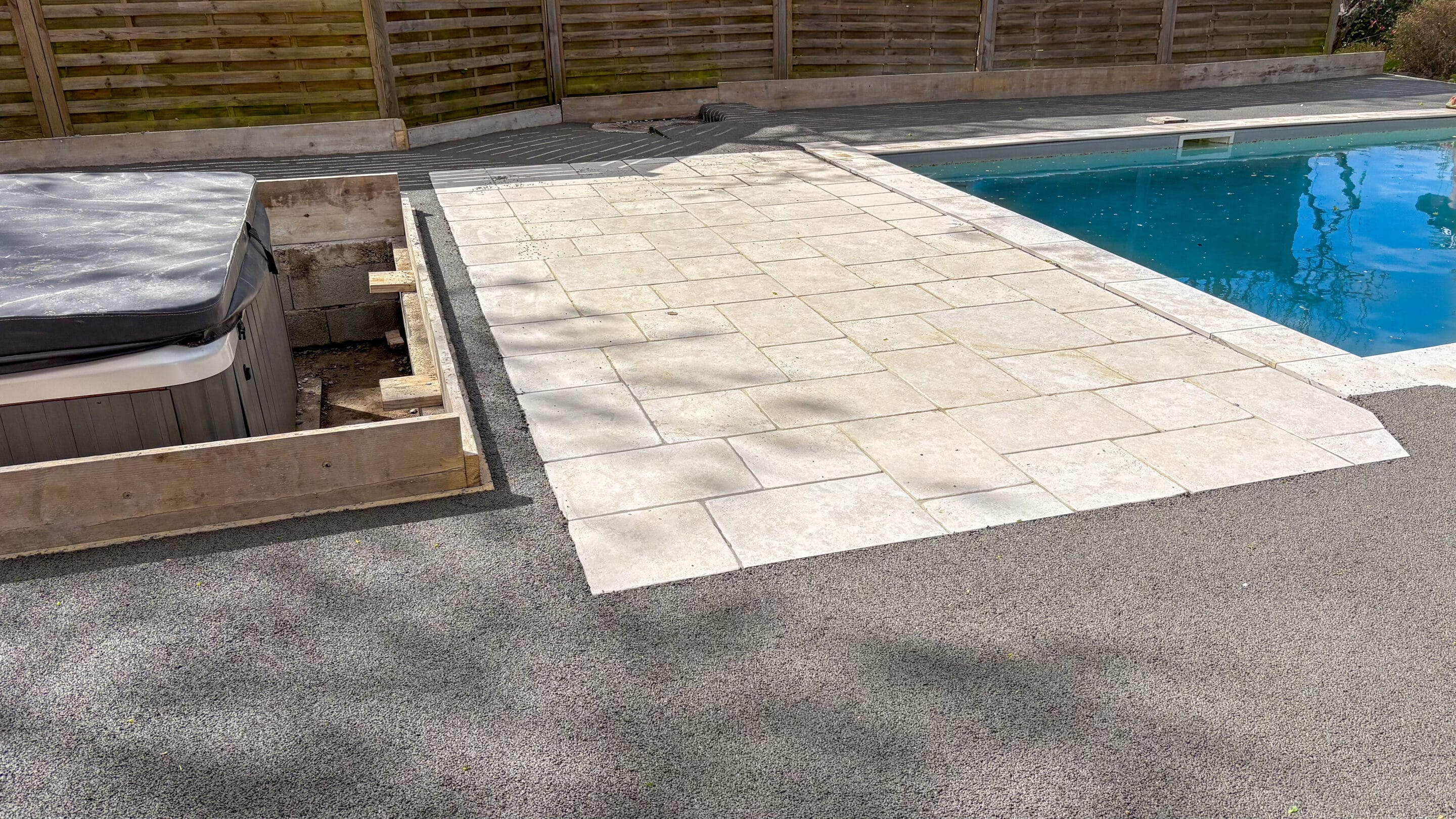 Cette semaine, notre équipe MDV est intervenue à La Roche-sur-Yon pour installer un béton poreux autour d’une piscine, une étape essentielle du projet. Cette phase exige précision et savoir-faire. En effet, une préparation soigneuse et une pose rigoureuse garantissent la durabilité et la fonctionnalité de l’installation.